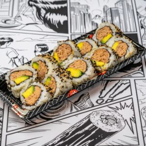 Cooked tuna inside-out rolls (white rice)