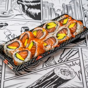 Salmon inside-out rolls bento box (white rice)